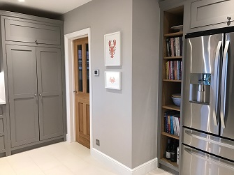 Our involvement in this project consisted of 4 stages: 1. Perform a full measured survey of the existing kitchen space and produce the “As Existing” plans and elevation drawings. 2. Discuss with the client their requirements and the chosen appliances, lighting, worktops etc. 3. Produce the “Proposed” plans and elevation drawings of the kitchen with the exact kitchen unit sizes, while liaising with the kitchen company “Classic Kitchens Direct” to work out the best arrangement and combination of base units, wall units, larder units, bookcases etc. 4. Produce a “shopping list” for the client to purchase the required units from the Classic Kitchens Direct website. The kitchen was fitted by the client's contractor. | ![]() |